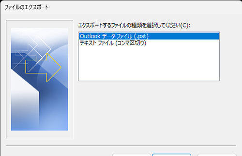 「Outlookデータファイル(.pst)」を選択し「次へ」