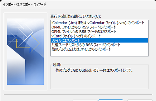 「ファイルにエクスポート」を選択し「次へ」