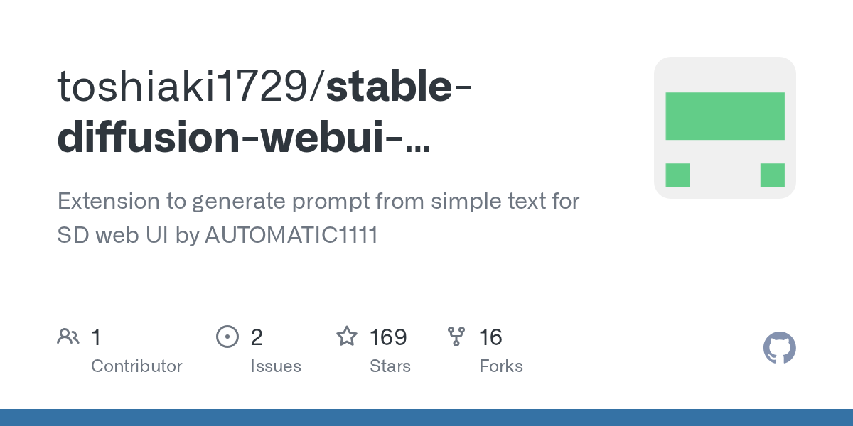 GitHub - toshiaki1729/stable-diffusion-webui-text2prompt: Extension to generate prompt from simple text for SD web UI by AUTOMATIC1111